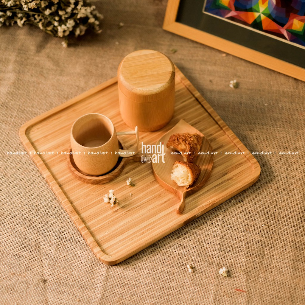 Nhà cửa & Đời sống > Bộ đồ bàn ăn > Khay, tấm lót bàn ăn || Khay gỗ tre hình vuông - Khay gỗ tre đựng thức ăn- bamboo wooden trayCòn hàng