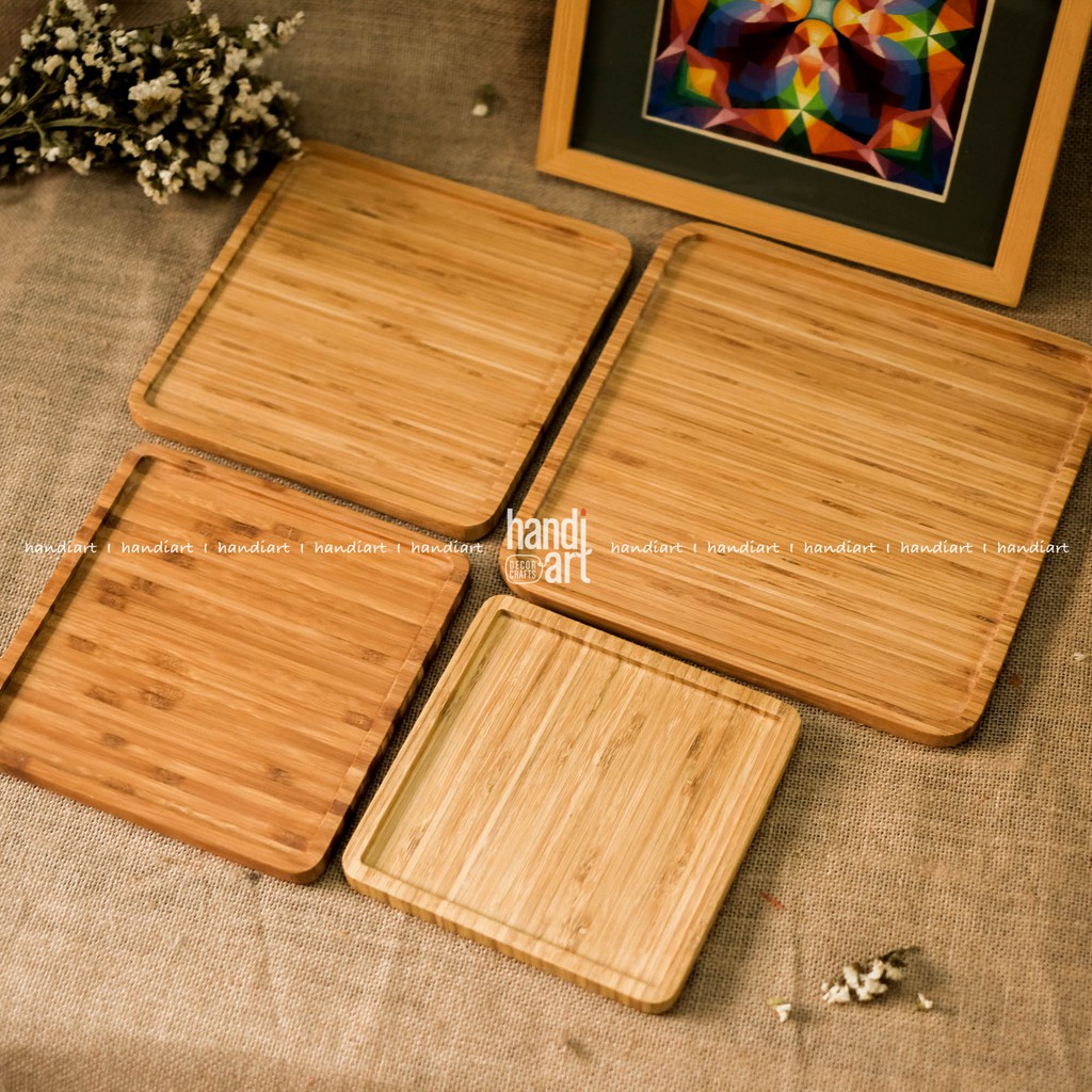 Khay gỗ tre hình vuông - Khay gỗ tre đựng thức ăn- bamboo wooden tray