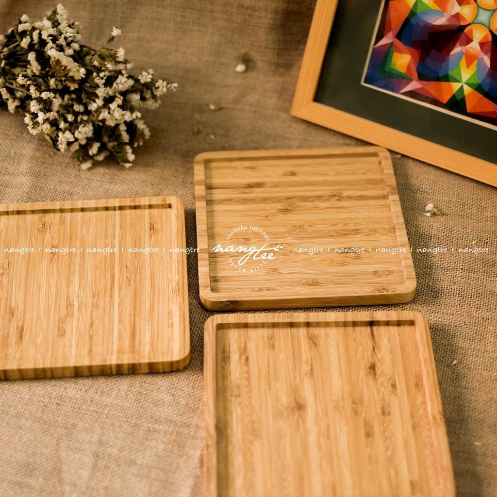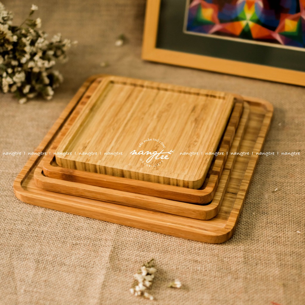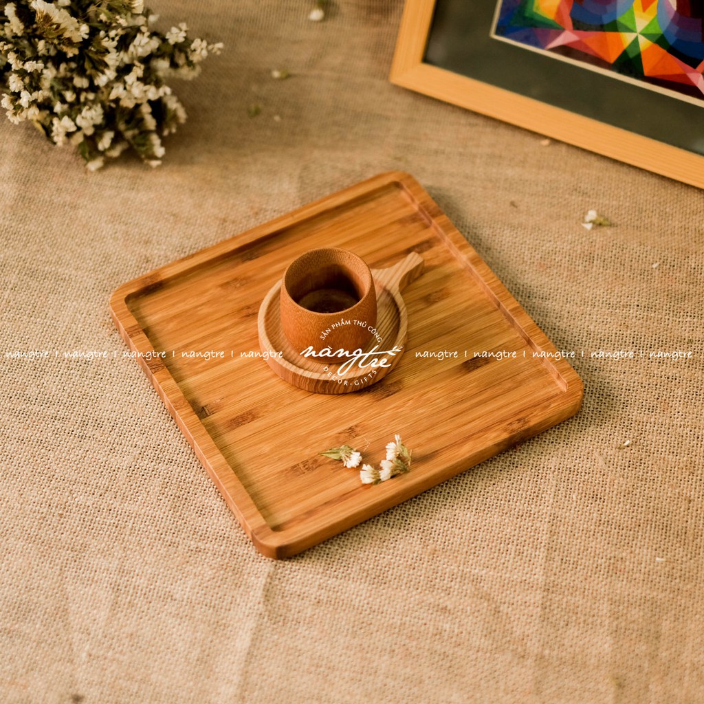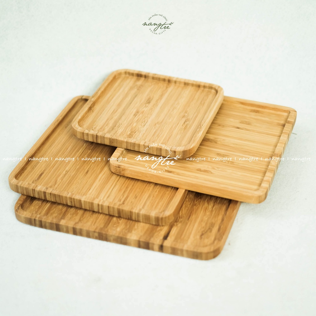 Khay gỗ tre hình vuông - Khay gỗ tre đựng thức ăn