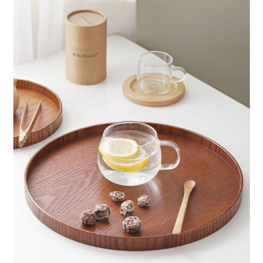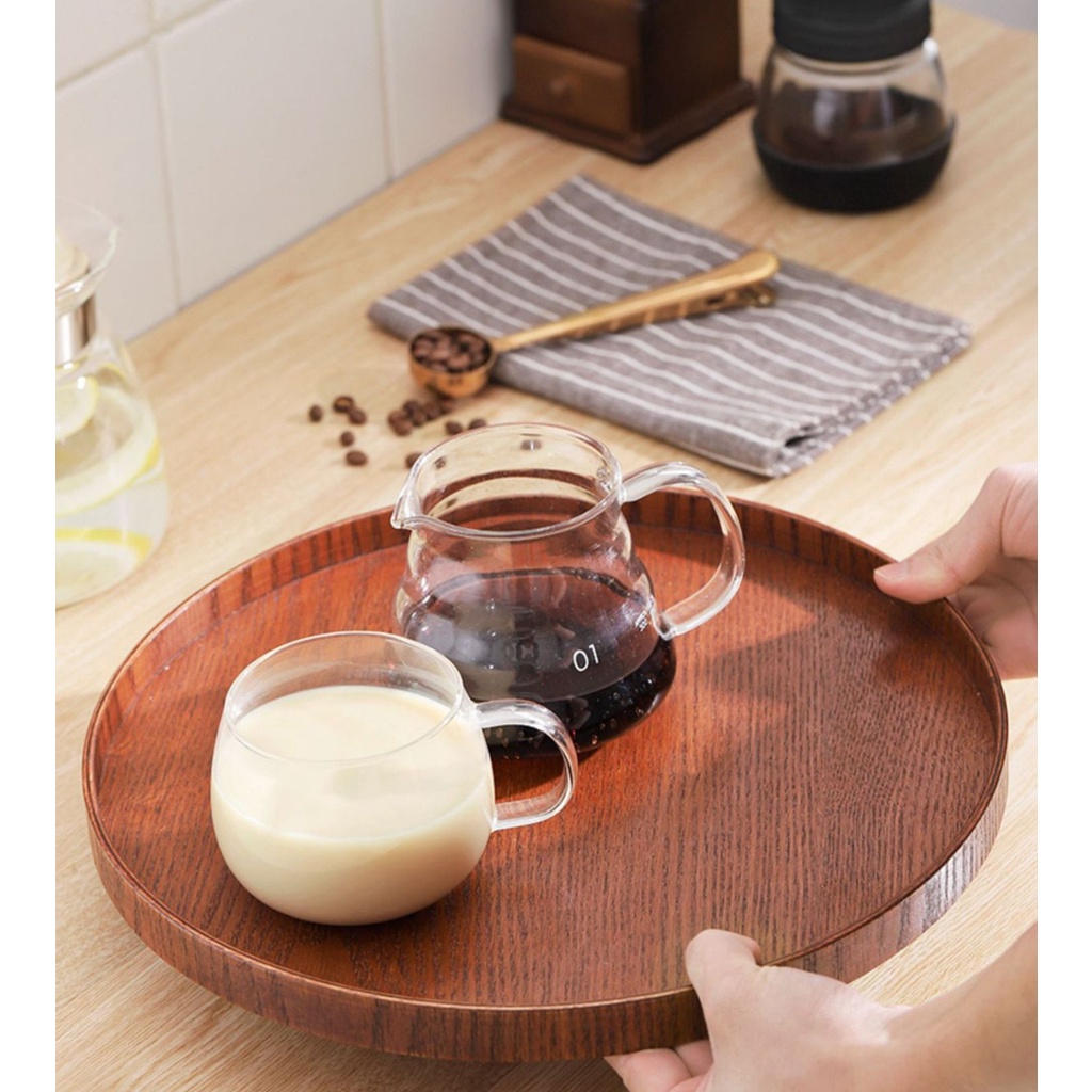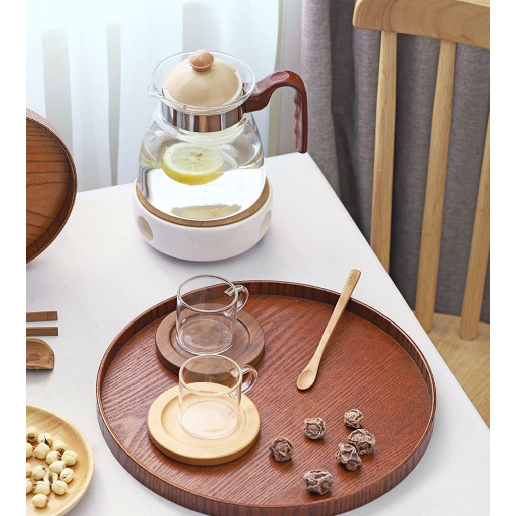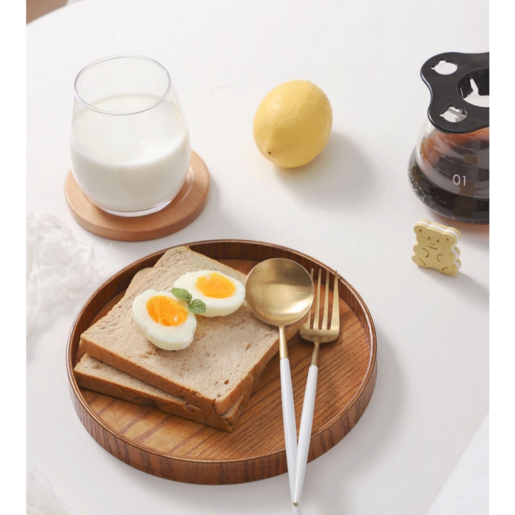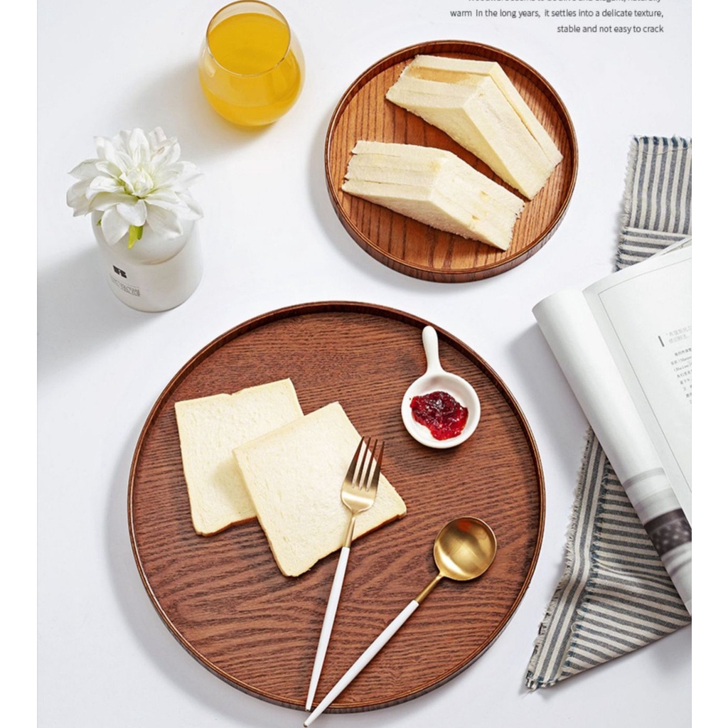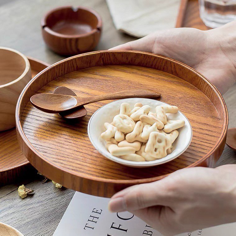 🍀 Khay gỗ tròn dùng để đựng đồ ăn bánh, trà, đồ ăn vặt,... an toàn và đẹp mắt.