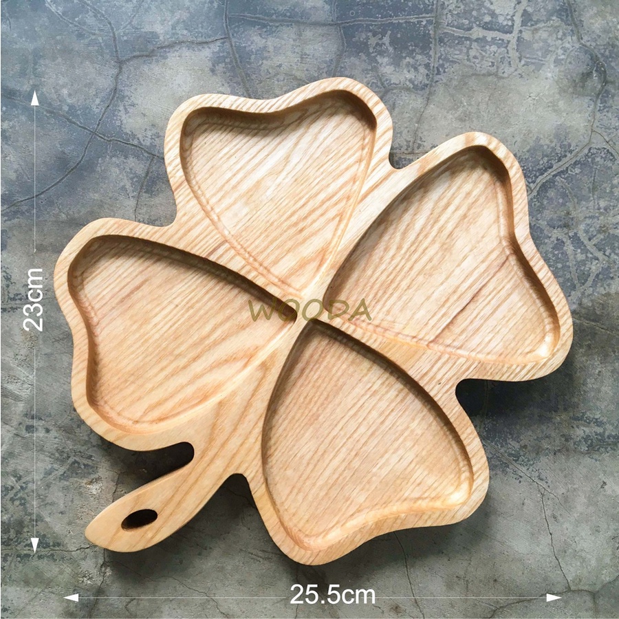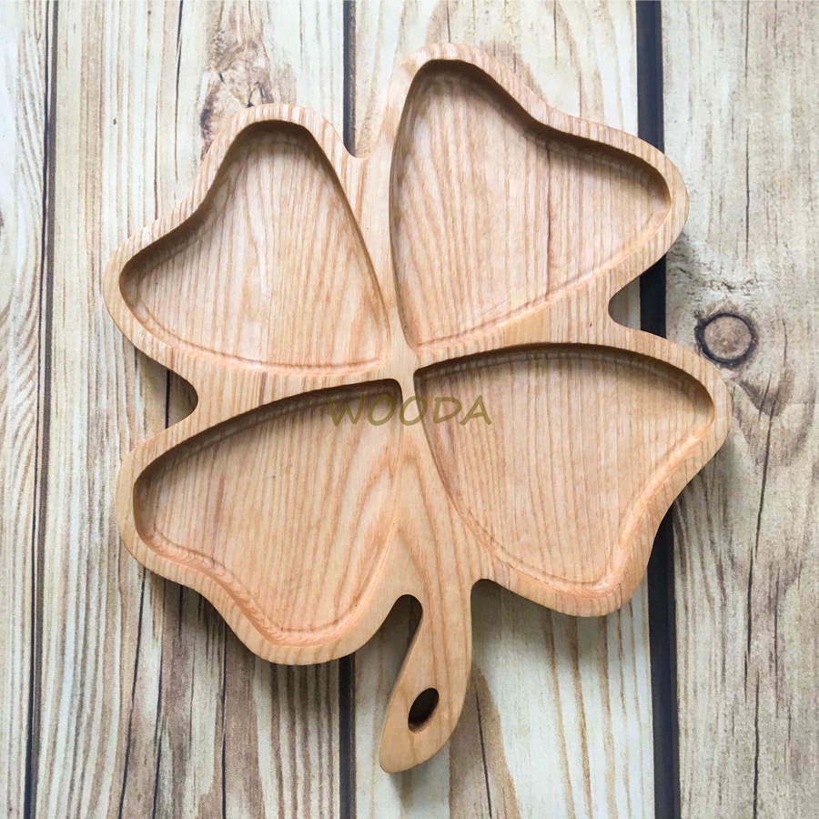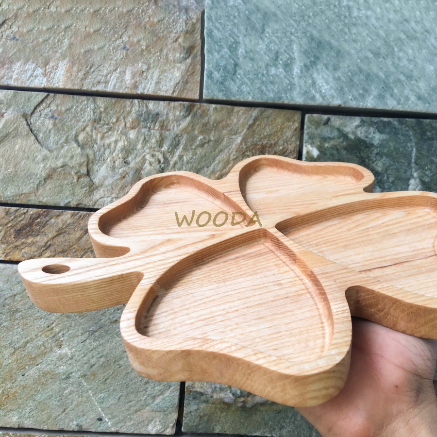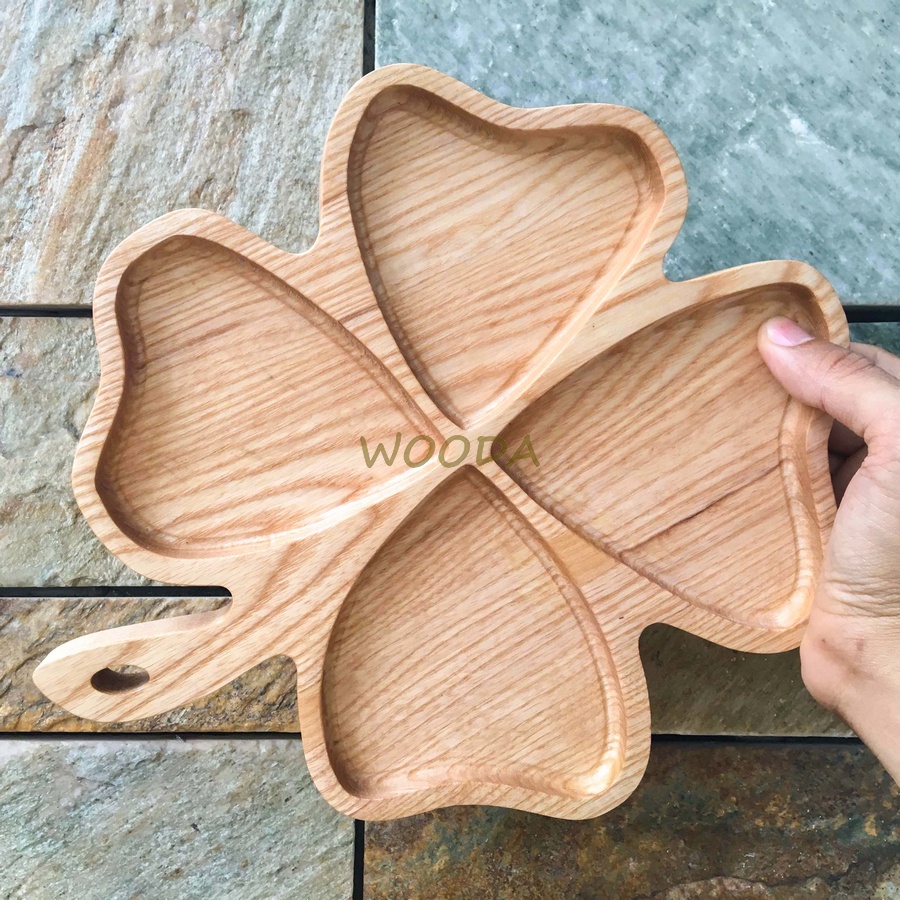 Khay gỗ tự nhiên hình cỏ 4 lá, Khay Đựng Bánh Mứt
