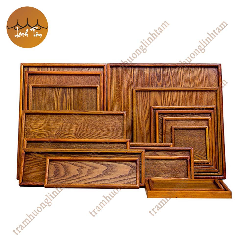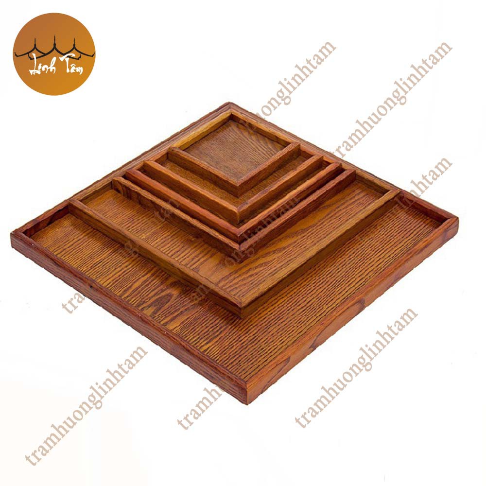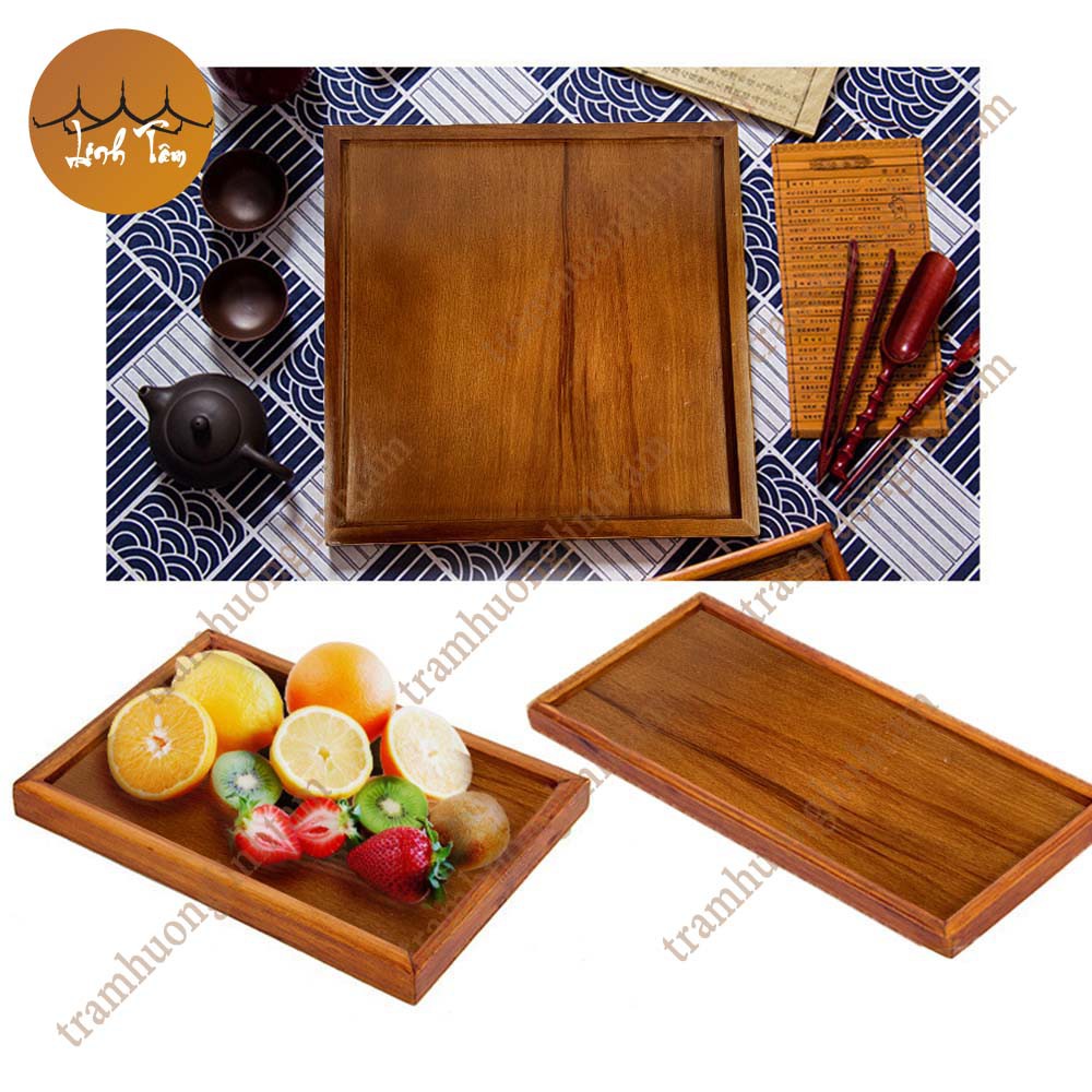 Khay gỗ tự nhiên nguyên khối màu nâu hình vuông đựng trà bánh đồ ăn đĩa gỗ decor phụ kiện phòng ăn