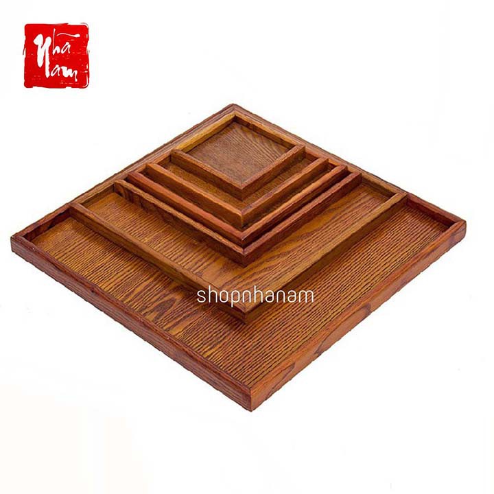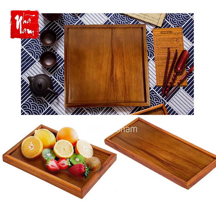 Khay gỗ vuông khay đựng đồ ăn đĩa gỗ tự nhiên cao cấp phụ kiện bàn ăn chụp ảnh decor
