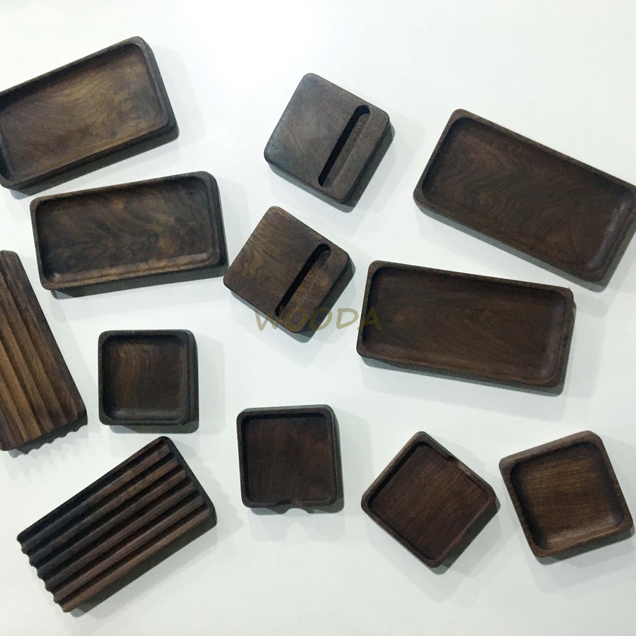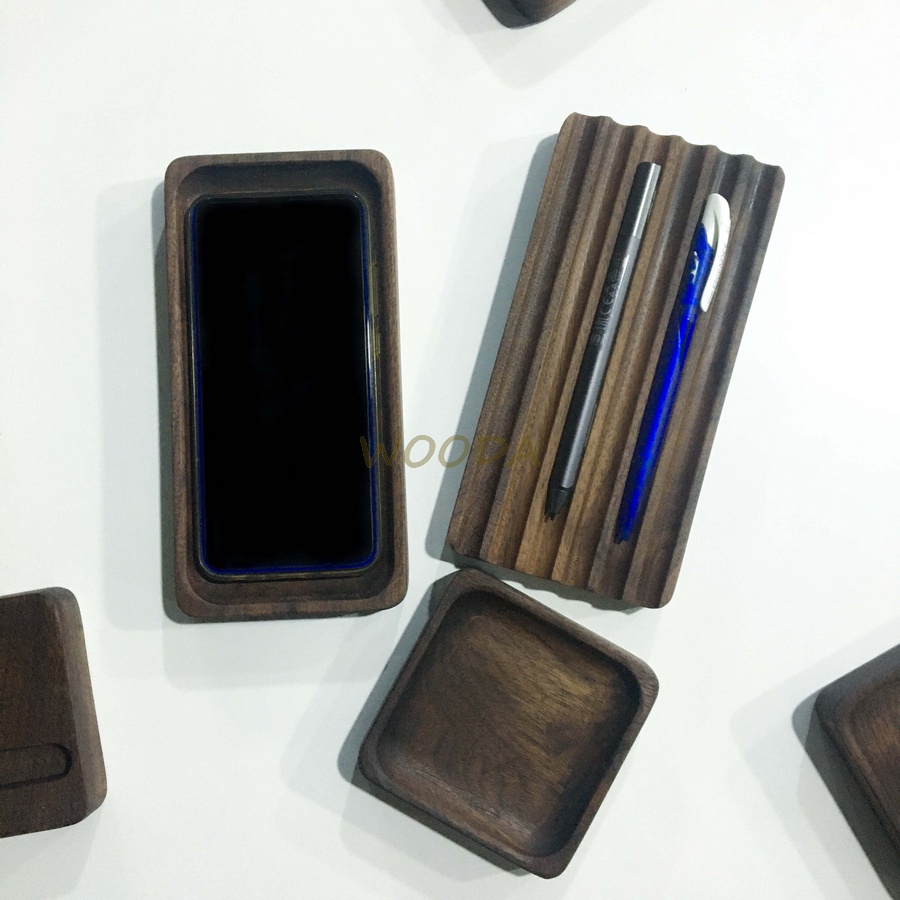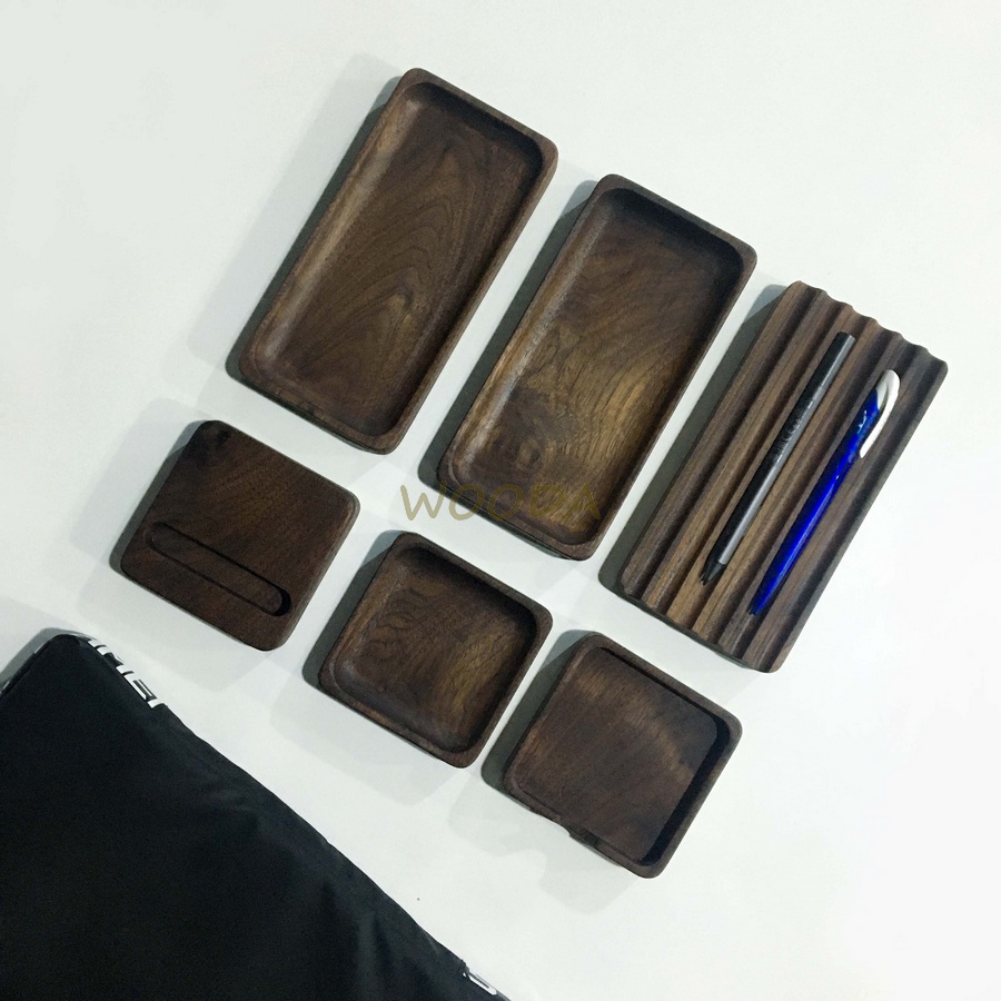 Bộ khay gỗ Walnut đa năng để bàn làm việc