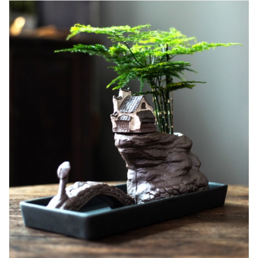 Khay gốm đặt nhà cổ trông cây trang trí bàn trà tiểu cảnh bonsai mini