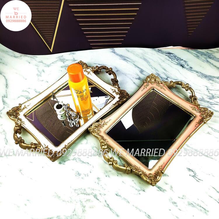 Giới thiệu Khay Gương Decor Nhỏ (viền trắng/hồng)