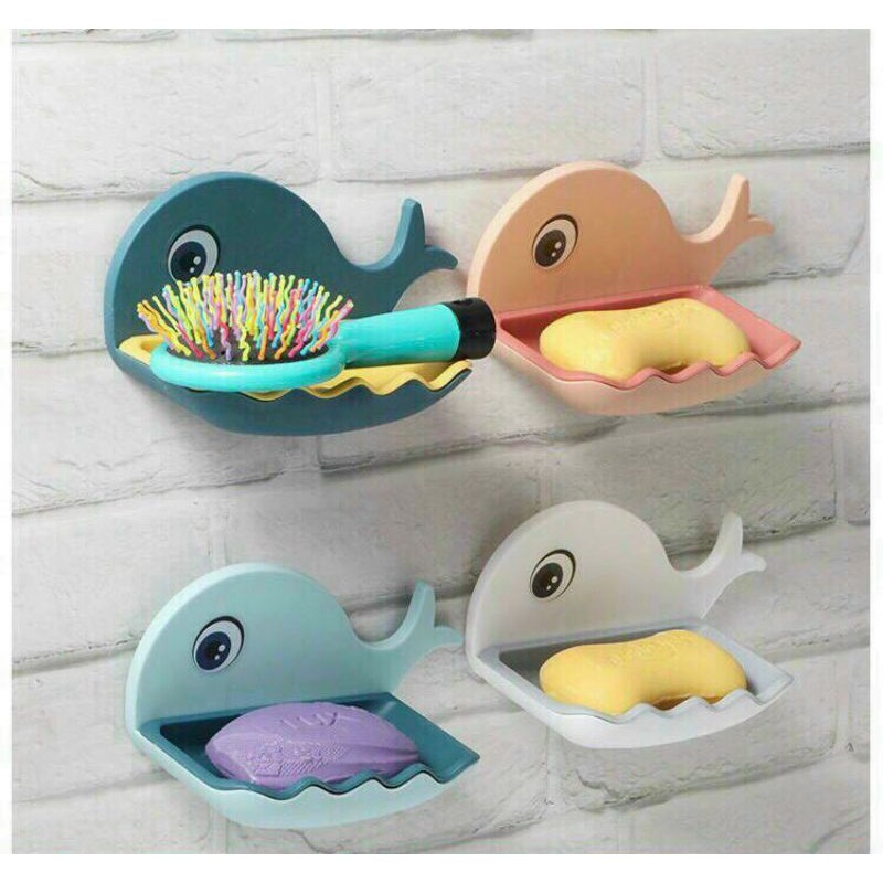 Khay để xà phòng gắn tường hình cá voi ngộ nghĩnh, màu sắc phong phú, nhựa lỳ bền đẹp.- Mặt sau cá có miếng dán bằng nhựa trong suốt gắn vào kệ để có thể dán lên tường