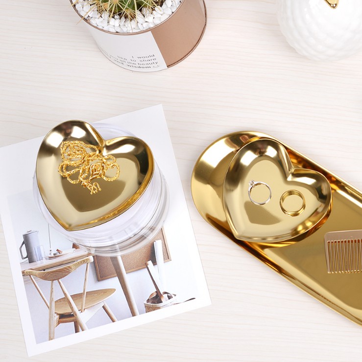 Khay inox 304 hình trái tim thích hợp dùng trang trí quán cafe, spa, tiệm bánh, DIY