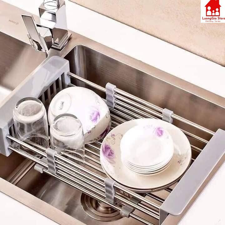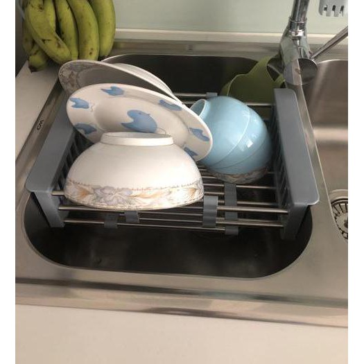 Khay inox để bồn rửa bát, chén gấp gọn thông minh có thể điều chỉnh kích thước phù hợp với các loại bồn rửa