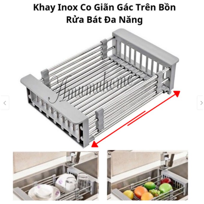 Nhà cửa & Đời sống > Dụng cụ nhà bếp > Khác || Khay inox gác bồn rửa chén co giãn tiện dụngCòn hàng