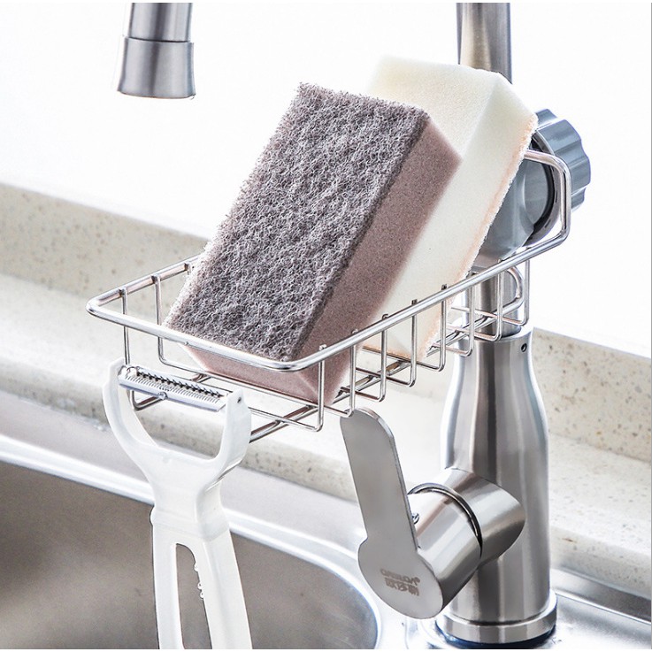 Giá treo vòi nước đựng lưới rửa bát, bàn chải, cọ xoong,… chất liệu inox cao cấp giúp không gian thêm gọn gàng, ngăn nắp đặc biệt là vệ sinh khu vực bồn rửa bát thường ẩm ướt- Chất liệu: thép không gỉ có thể điều chỉnh tư thế