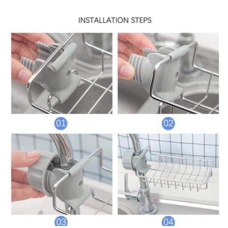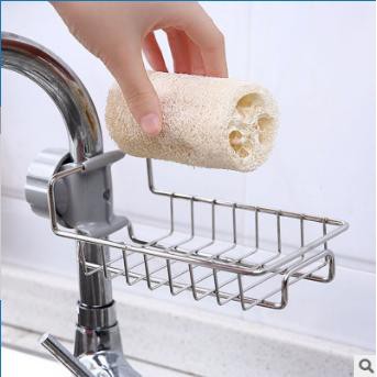 - Giá treo vòi nước đựng lưới rửa bát, bàn chải, cọ xoong,… chất liệu inox cao cấp giúp không gian thêm gọn gàng, ngăn nắp đặc biệt là vệ sinh khu vực bồn rửa bát thường ẩm ướt.