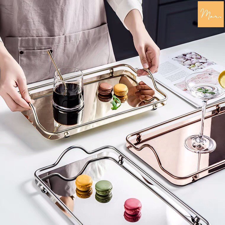 Khay inox tráng gương cao cấpĐược thiết kế tinh xảo với màu sắc sang trọng, bắt mắt, sử dụng tiện lợi, thích hợp làm đồ trang trí trong gia đình.