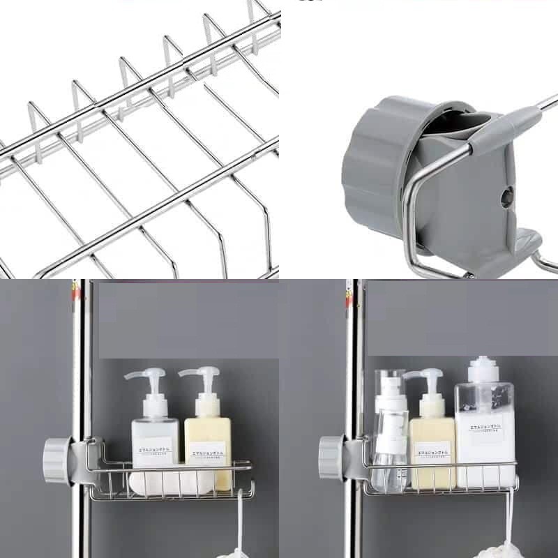 Ai ngại khoan tường hoặc các giá nhựa, thủy tinh lâu lâu đóng cặn canxi nhìn chướng mắt lắm thì đổi qua cái inox này nha- gắn trực tiếp lên thanh inox vòi rửa khỏi đục đẽo luôn