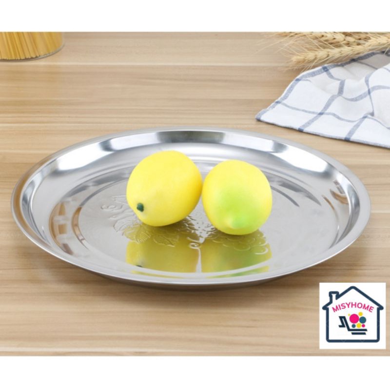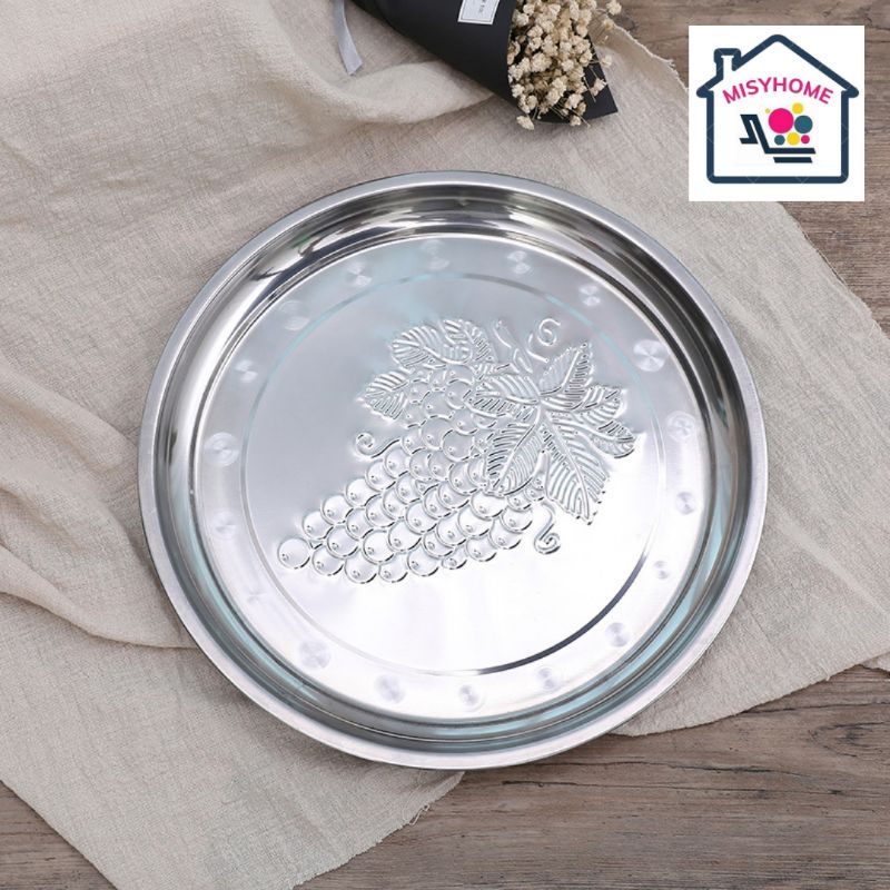 Nhà cửa & Đời sống > Bộ đồ bàn ăn > Khay, tấm lót bàn ăn || Khay inox tròn đựng thức ăn khay khai trương khánh thành khay bưng bê đựng thực phẩm hứng nước 28 30 32 34 36cm MisyhomeCòn hàng