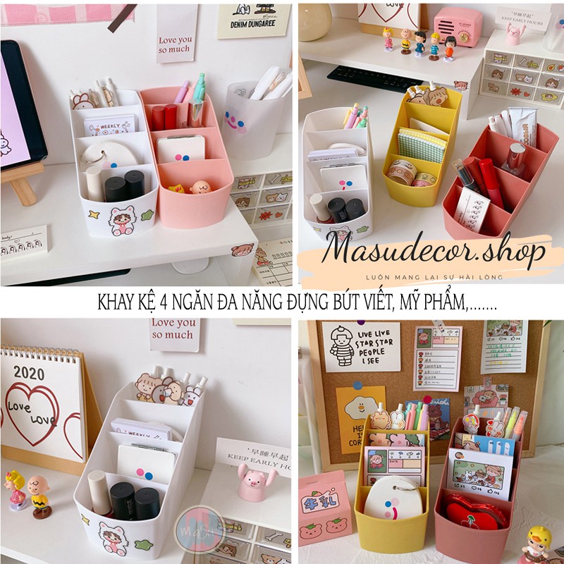 Khay kệ 4 ngăn đa năng đựng mỹ phẩm, bút, điều khiển, điện thoại,...