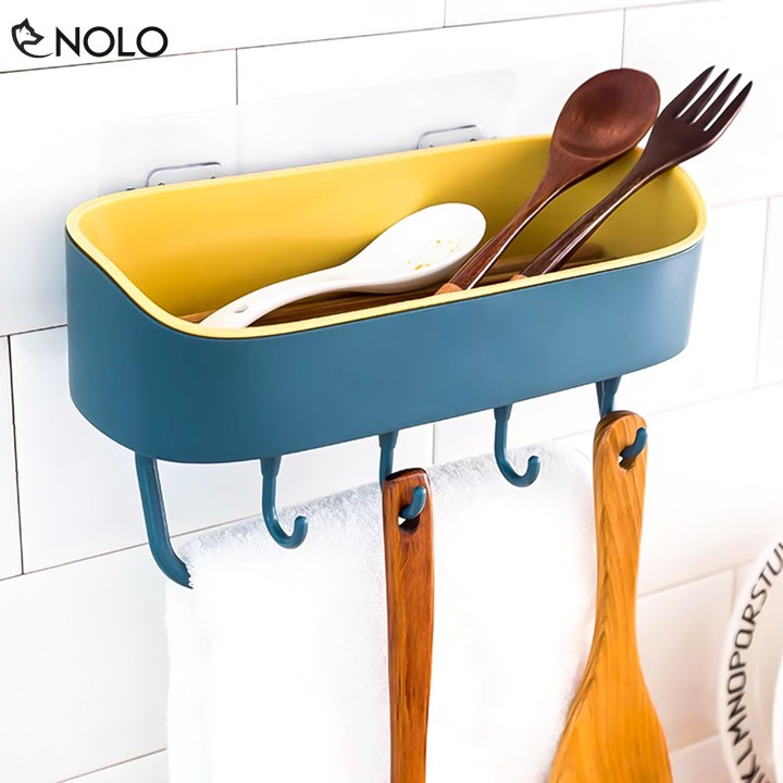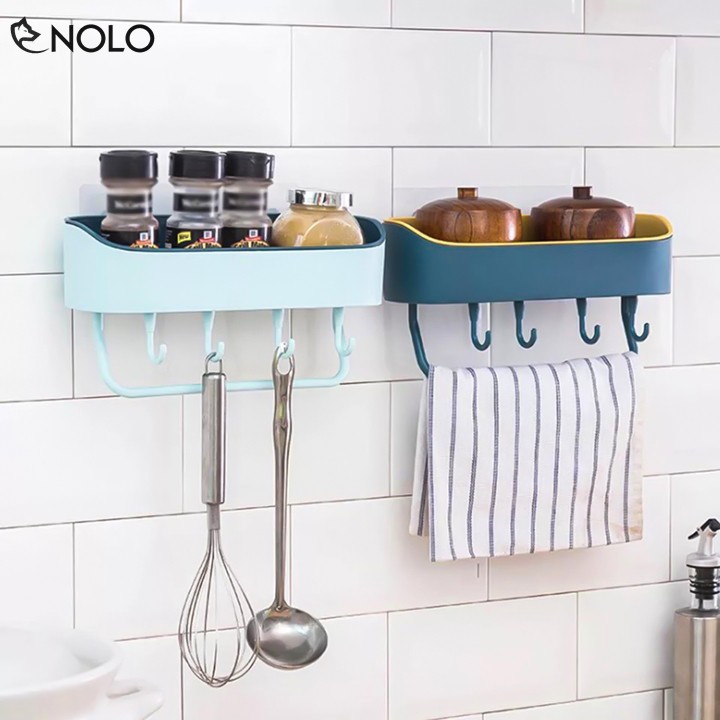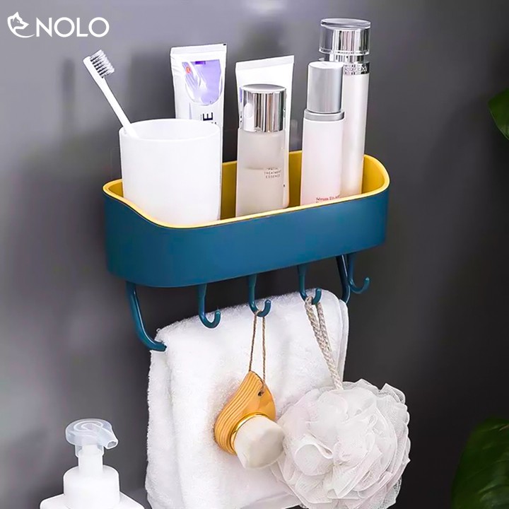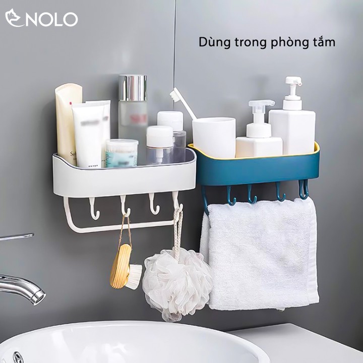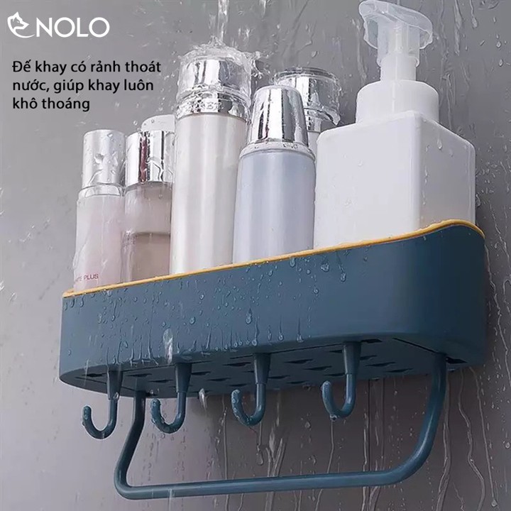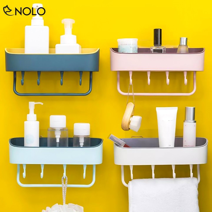 Khay Kệ Đa Năng Dán Tường Có Móc Treo Khăn, Vật Dụng Model KK02 Chất Liệu Nhựa PP