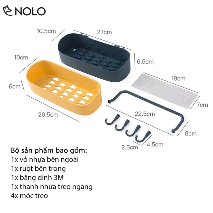 Ngoài ra khay còn kèm theo 4 móc treo, và 1 thanh ngang để phơi khăn, treo vật dụng cần thiết.