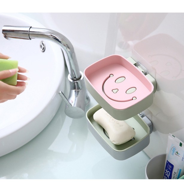 Khay Kệ Đựng Xà Bông Xà Phòng 2 Lớp Dán Tường Hình Mặt Cười Dễ Thương