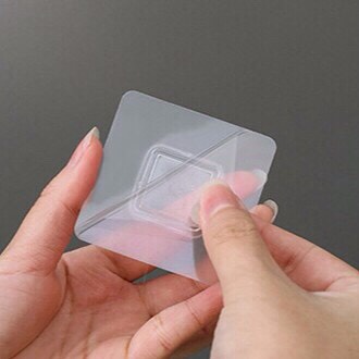 👉 Lột băng dính ở miếng dán lên tường, nơi vừa làm sạch, ấn giữ đến khi đẩy hết không khí ra ngoài.