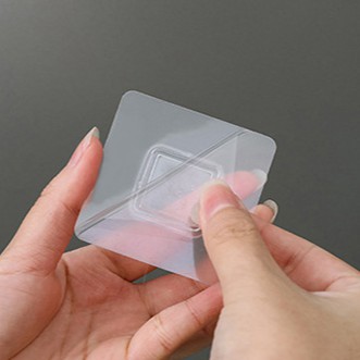 2. Lột băng dính ở miếng dán rồi dán lên tường, nơi vừa làm sạch