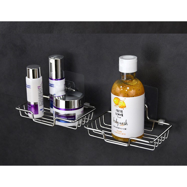 Khay Kệ Inox dán tường để xà bông phòng tắm siêu dính (HSN)