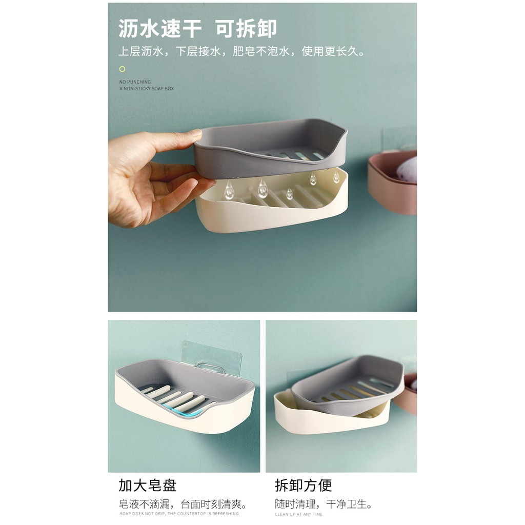 Nhà cửa & Đời sống > Đồ dùng phòng tắm > Kệ đựng xà phòng || Khay kệ nhựa 2 lớp đựng xà phòng nhà tắm dán tường có rãnh thoát nướcCòn hàng