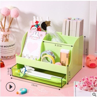 + Khay kệ nhựa đựng đồ trang điểm mini thiết kế nhiều ngăn giúp bạn đựng được nhiều đồ hơn