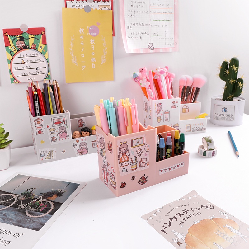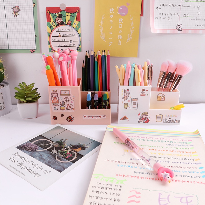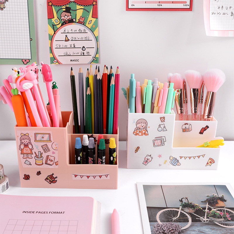 Khay Kệ Nhựa Đựng Bút/ Cọ Trang Điểm/ Đồ Để Bàn Đa Năng Tiện Dụng nhiều màu kích cỡ 15*7.4*10cm