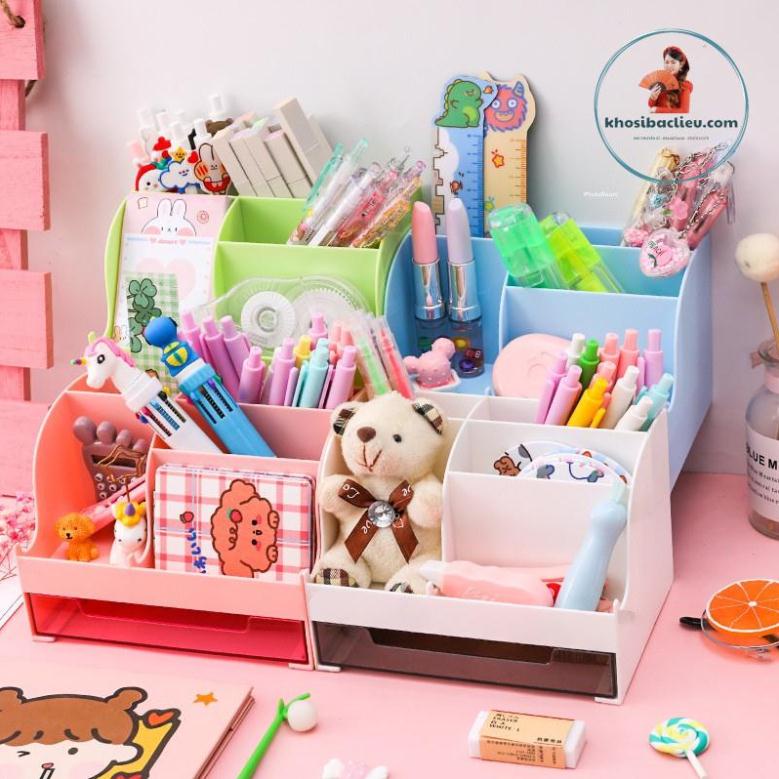 Nhà cửa & Đời sống > Sắp xếp nhà cửa > Kệ sách để bàn || Khay kệ nhựa đựng đồ văn phòng phẩm, phụ kiện trang điểm đa năng để bàn 5 ô kèm ngăn kéo có sẵn 4 màu Tom HouseCòn hàng