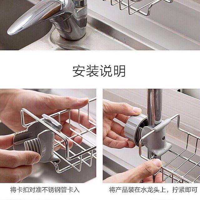 Khay inox kẹp tại vòi nước đựng giẻ, nước rửa bát, xà phòng các kiểu vừa tiện vừa sạch sẽ--------------------------------------------------