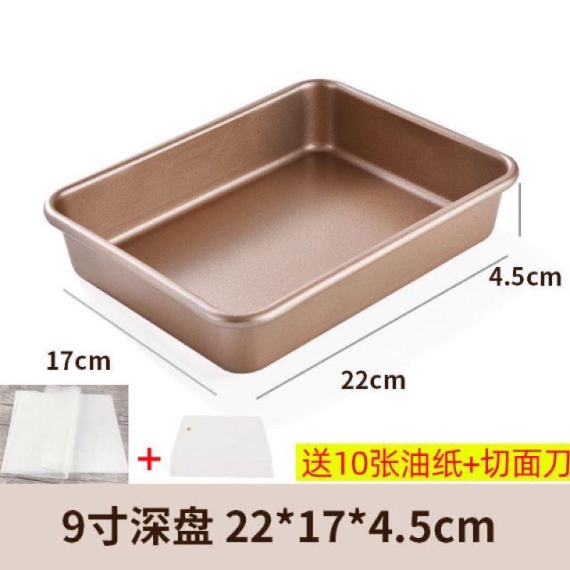 Khay,khuôn nướng bánh hình chữ nhật chống dính sâu lòng cao cấp màu vàng 33cm*24cm*5cm chiều cao