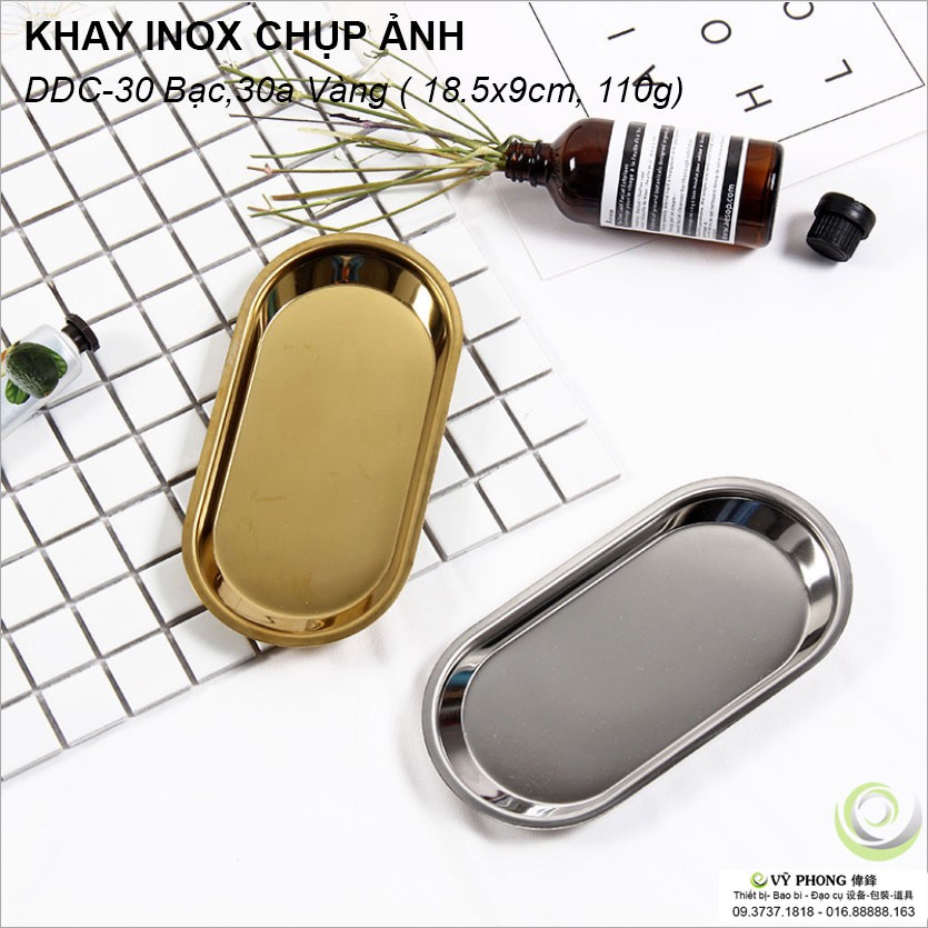 Tên sản phẩm : KHAY KIM LOẠI INOX BẠC/VÀNG HÌNH OVAL TRANG TRÍ CHỤP ẢNH SẢN PHẨMMã sản phẩm : DDC-29,29a,30,30a