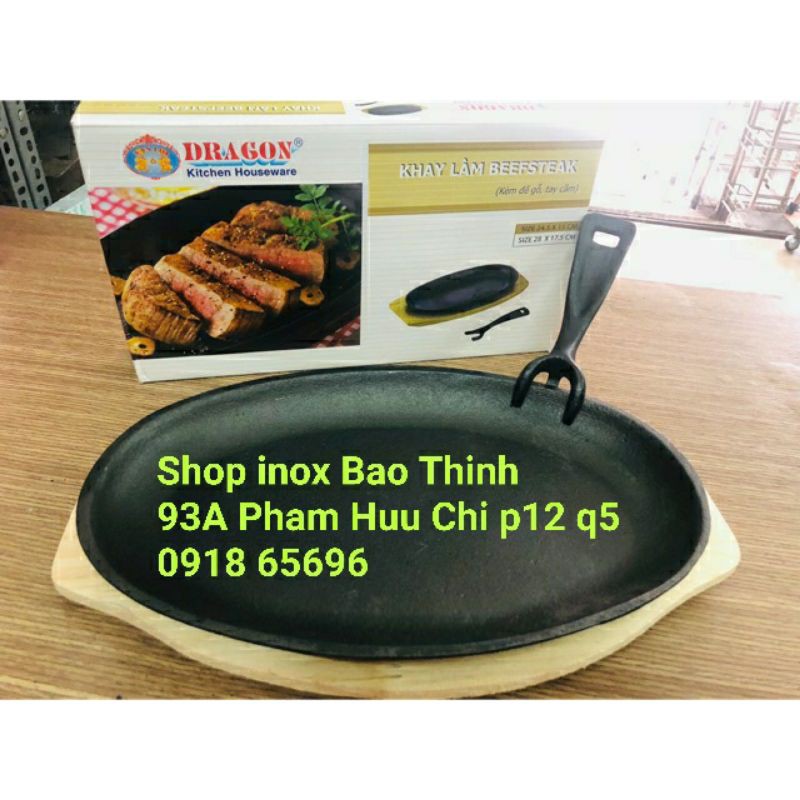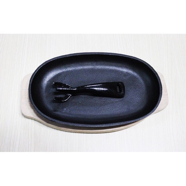 Khay làm Beefsteak (kèm đế gỗ và tay cầm)