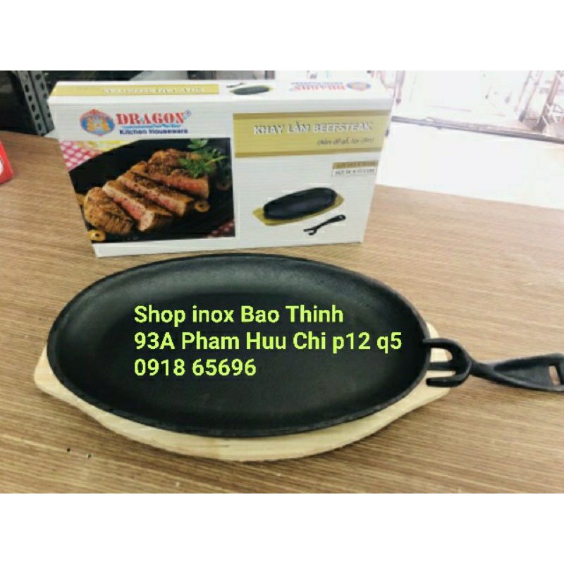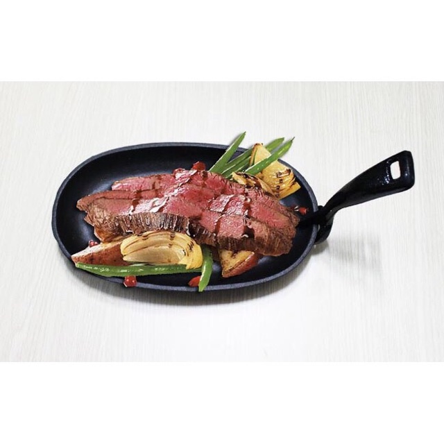 Khay la beefsteak co tay cẩm,giup ko nóng tay,va co tráng men chống dính.Chảo gang chống dính hinh oval đc thiet kế nhỏ gọn,co kha nang lam nóng nhanh,giu nhiet tốt.