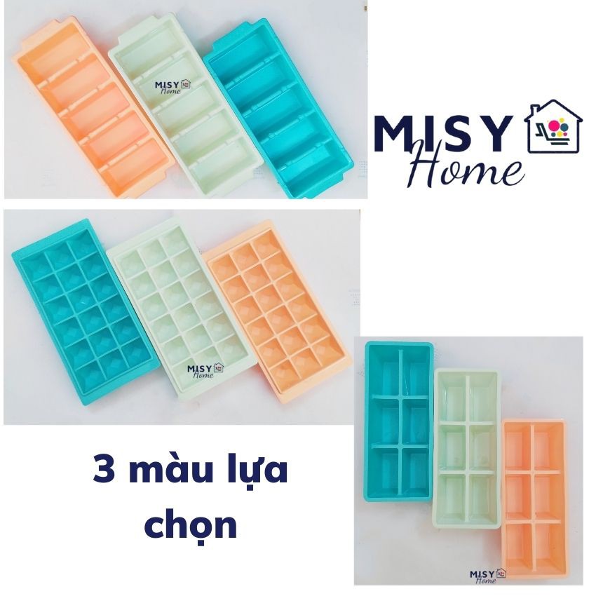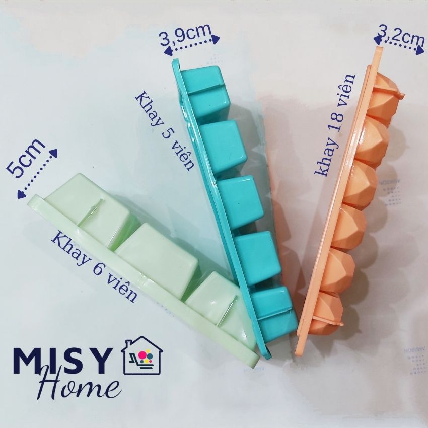 Khay làm đá 5 6 18 viên bỏ tủ lạnh hình chữ nhật kim cương dễ lóc dễ lấy chống dính làm đá viên thạch rau câu Misy home