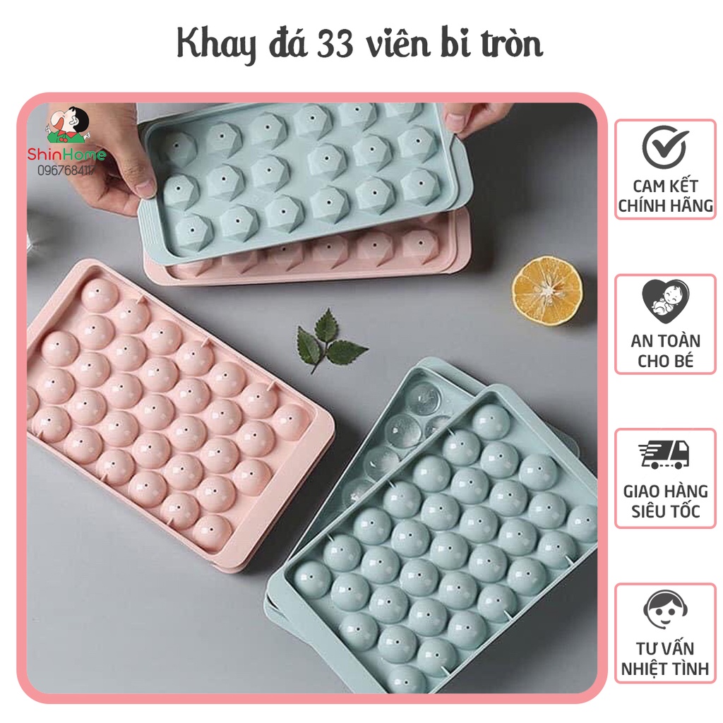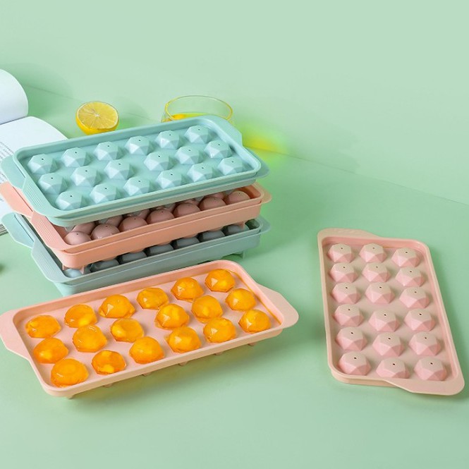 Khay đá tròn bi, kim cương làm đá viên, thạch có nắp đậy