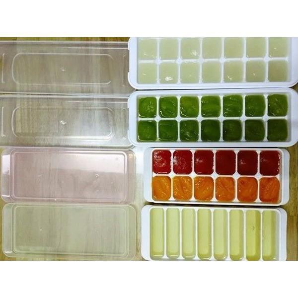 - Công dụng: Dùng để làm đá, hoặc mẹ dùng để trữ đồ ăn dặm cho bé cũng rất tiện. Có các khay có ngăn nhỏ phù hợp với lứa tuổi cho bé! Có nắp giúp giữ vệ sinh sách sẽ!