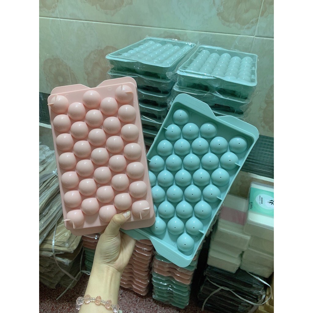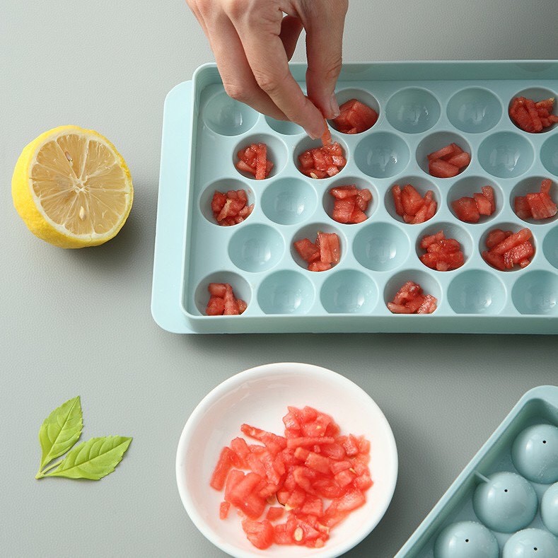 Khay làm đá, làm thạch hình tròn có nắp đậy thông cho tủ lạnh 33 viên