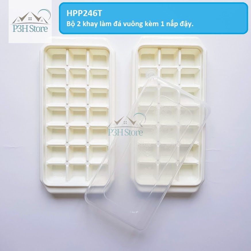 2. Bộ HPP246T bao gồm 2 khay làm đá ( hình viên vuông ) + 1 nắp