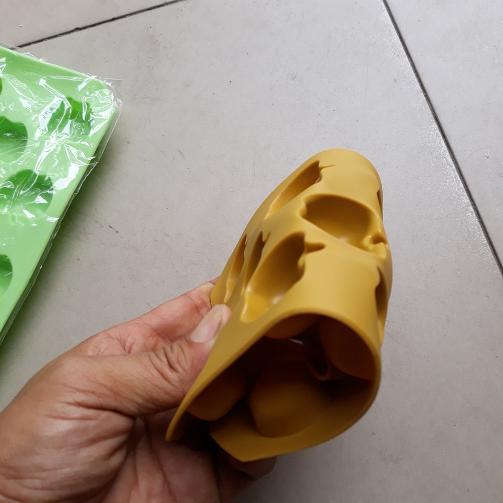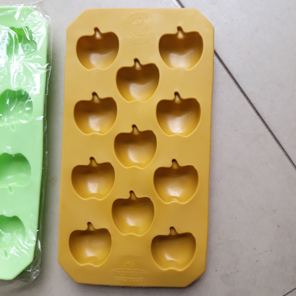 tạo hình viên đá vô cùng sống động, dễ thương và xinh xắn, chất liệu nhựa dẻo siêu bền, an toàn cho sức khỏe người dùng, chỉ cần ấn nhẹ tay viên đá rơi ra, không cần dùng nước hay dùng sức như khay đá nhựa cứng, lại bền bỉ, không nứt vỡ,1 khay gồm 11 ô, tạo được viên táo đá