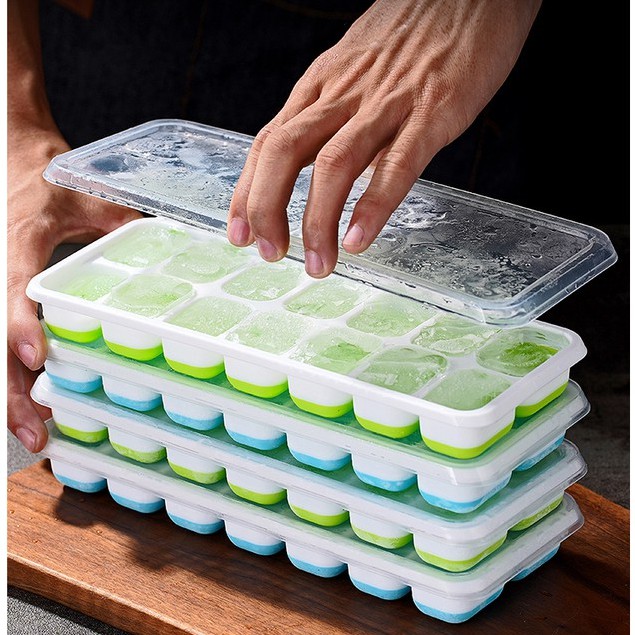 Khay Làm Đá Silicon 14 Ô Có Nắp Dễ Dàng Lấy Đá