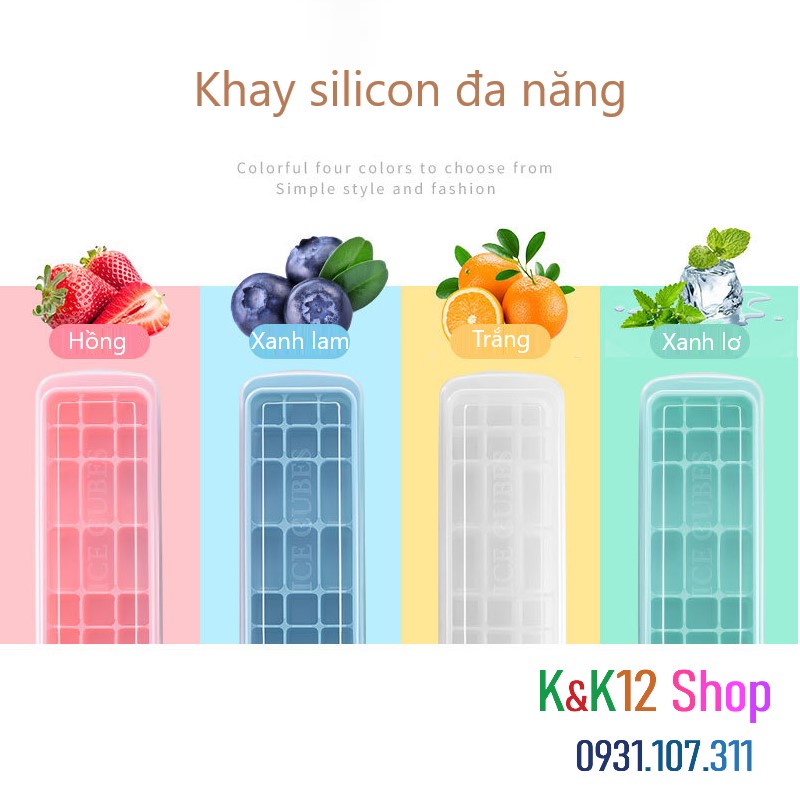 - Khay làm đá silicon dùng để làm đá, bánh ngọt, sô-cô-la, thạch, bánh pudding và các món tráng miệng khác.