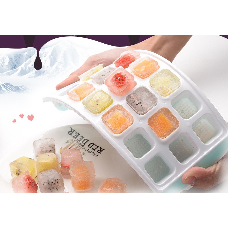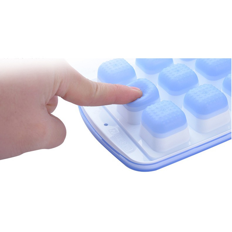 Khay làm đá silicon có nắp đậy ngăn mùi tủ lạnh 21 ô kích thước 3cmx3cm lấy đá cực đơn giản