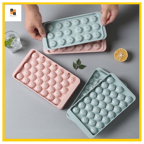 Khay Làm Đá Thạch Bi Có Lắp Nhựa Tròn Làm Hoa Quả Trái Cây Khuôn Đá Viên Tròn 33 Viên