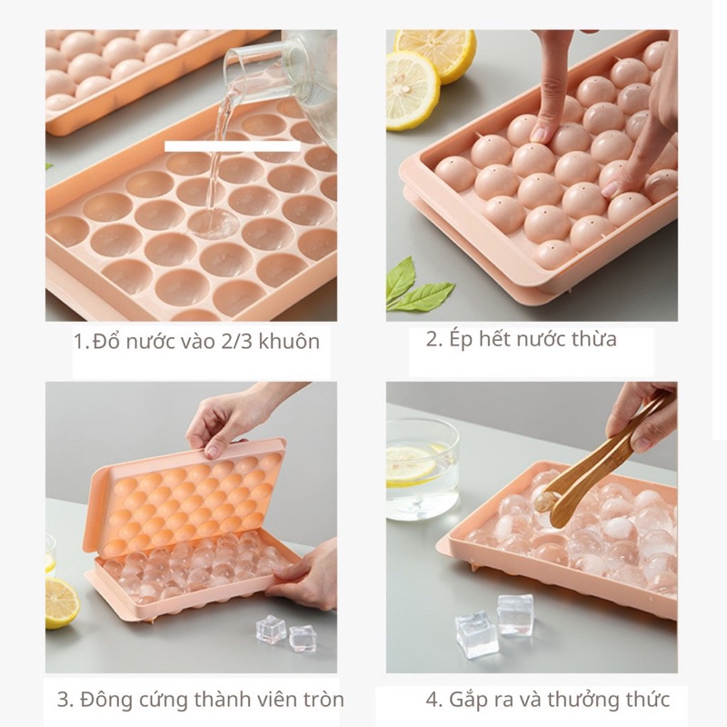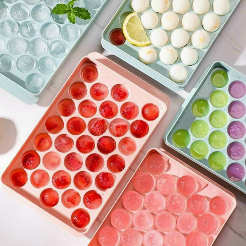 Khay Làm Đá Thạch Bi Nhựa Tròn Làm Hoa Quả Trái Cây/ Khuôn Rau Câu, Khay Đá Viên Tròn 33 Viên