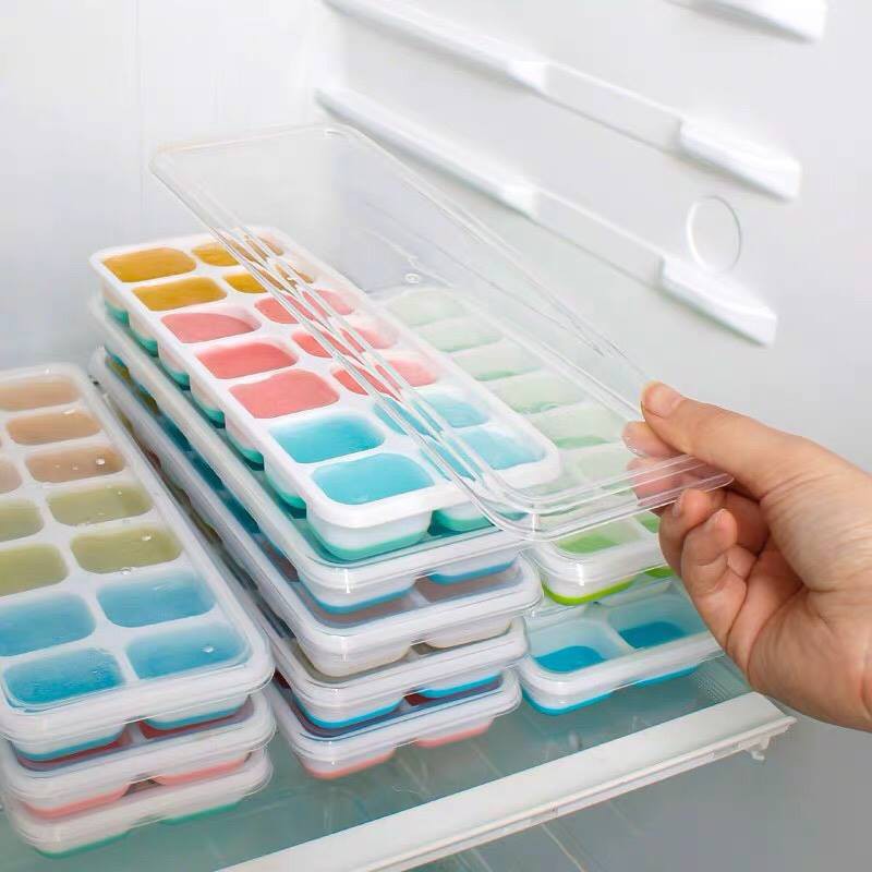 Hay quá nè các mẹ ơi, khay làm đá bằng nhựa silicon khiến việc lấy đá trở nên dễ dàng hơn bao giờ hết, hơn thế lại còn có nắp đậy rất vệ sinh, tránh lẫn mùi trong tủ lạnh, các mẹ mua ngay về làm đá, để đồ ăn dặm cho bé,Gồm 14 ngăn hình chữ nhật, dễ dàng cho bạn làm những viên đá mát lạnh, tinh khiết ngay tại nhà.