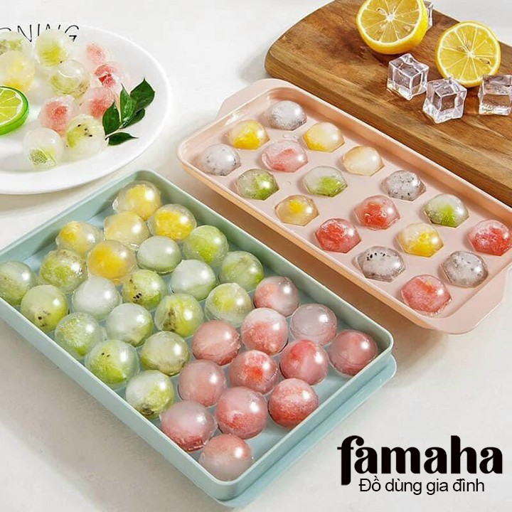 Giới thiệu Khay làm đá tròn 33 viên thiết kế thông minh, khuôn làm thạch rau câu hoa quả trái cây cỡ lớn tiện dụng FAMAHA