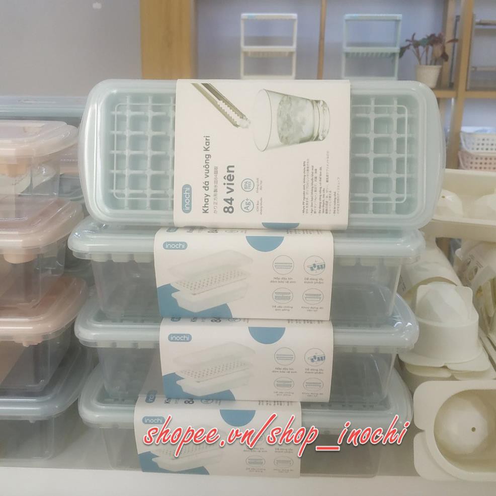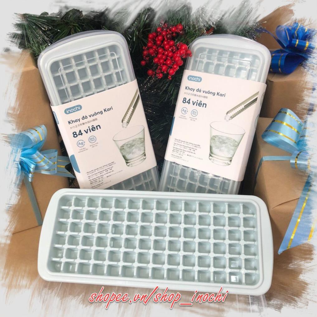 Khay làm đá -Vỉ đá tủ lạnh khay 84 viên có nắp đậy và hộp bằng nhựa nguyên sinh karu inochi Màu ngẫu nhiên