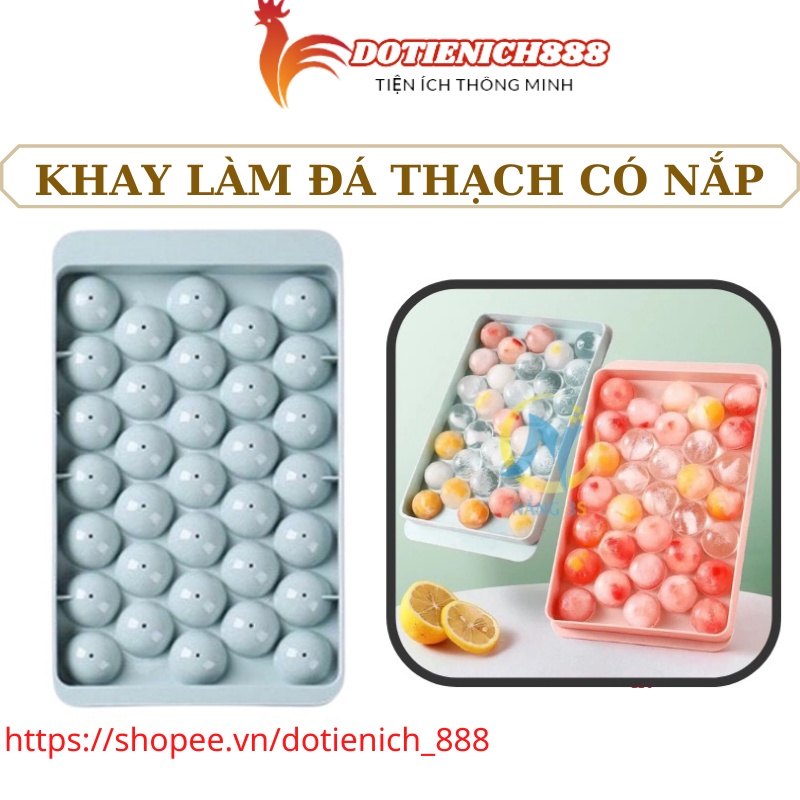Khay làm đá viên, khuôn làm thạch hình tròn có nắp đậy